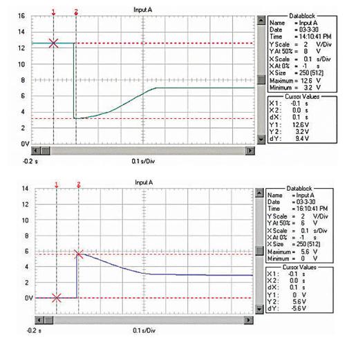 超級電容器與蓄電池并聯(lián)時(shí),由于超級電容器的等效串聯(lián)電阻(ESR)遠(yuǎn)低于蓄電池的內(nèi)阻,因此,在啟動瞬間1200A啟動電流中的800A電流由超級電容器提供,蓄電池僅提供400A的電流。明顯低于僅采用蓄電池的560A,有效地降低了蓄電池極板的極化,阻止了蓄電池內(nèi)阻的上升使啟動過程的平穩(wěn)電壓得到提高。最主要的是蓄電池極板極化的減輕不僅有利于延長蓄電池的使用壽命,而且也可以消除頻繁啟動對蓄電池壽命的影響。