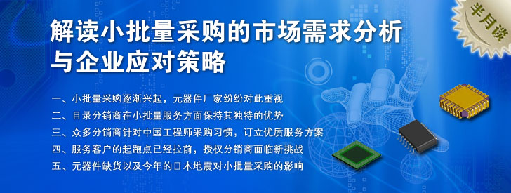 在以前,小批量采購服務(wù)一直是目錄分銷商和獨立分銷商所擅長的領(lǐng)域,但近兩年,隨著中國市場小批量采購需求的大幅增長,傳統(tǒng)的以做批量業(yè)務(wù)為主的授權(quán)分銷商也開始關(guān)注并推廣其小批量采購業(yè)務(wù)。盡管都在參與小批量采購市場的競爭,但授權(quán)分銷商、目錄分銷商和獨立分銷商因業(yè)務(wù)運作模式的不同,在小批量采購服務(wù)方面具有各自的特點,服務(wù)的目標及對象也不盡相同。