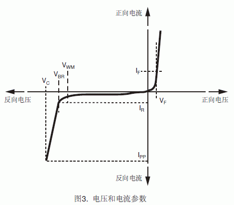 在特定的峰值脈沖電流定額下,TVS上會出現(xiàn)鉗位電壓。TVS的擊穿電壓在非常小的電流下測得(例如1mA或10mA),它不同于應(yīng)用條件下的實際雪崩電壓。因此,半導(dǎo)體制造商所標(biāo)注的是在大電流下的典型或最大擊穿電壓。