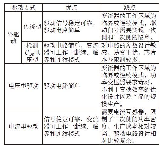 表1 不同的同步整流管驅(qū)動(dòng)方案比較