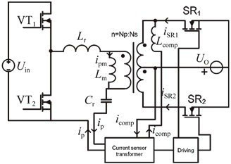 由于LLC諧振變流器的勵(lì)磁電流較大,導(dǎo)致一次側(cè)電流與二次側(cè)電流之間存在相位差,因此,可以采用補(bǔ)償電感L comp對(duì)相位進(jìn)行補(bǔ)償,而有文獻(xiàn)則采用輔助變壓器對(duì)一次側(cè)電流進(jìn)行采樣。這兩種驅(qū)動(dòng)方案都可以解決相位差問題,而且沒有增加大型的磁性元件,有利于提高效率和功率密度。