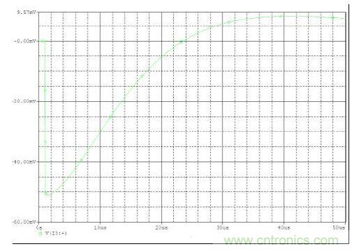 下面是一個(gè)如何使用上述關(guān)系的示例。問(wèn)題是根據(jù)200kHz開(kāi)關(guān)電源10 amp變化幅度允許范圍內(nèi)的50mV輸出變化挑選一個(gè)輸出電容。所允許的峰值輸 出阻抗為:Zout=50 mV / 10 amps 或5毫歐。這就是最大允許輸出電容ESR。接下來(lái)就是建立所需的電容。幸運(yùn)的是,ESR和電容均為正交型,可單獨(dú)處理。一 個(gè)高 (Aggressive) 電源控制環(huán)路帶寬可以是開(kāi)關(guān)頻率的1/6或30kHz。于是在 30 kHz 時(shí)輸出濾波電容就需要一個(gè)不到5毫歐的電抗,或高于1000uF的電容。 圖2顯示了在5毫歐ESR、1000uF電容以及30 kHz電壓模式控制條件時(shí)這一問(wèn)題的負(fù)載瞬態(tài)仿真。就校驗(yàn)這一方法是否有效的10amp負(fù)載變動(dòng)幅度而言, 輸出電壓變化大約為52mV。