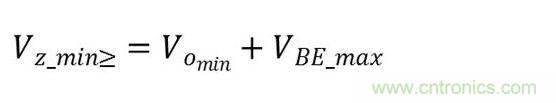輸出電壓等于反向齊納電壓VZ減去該晶體管基極至發(fā)射極電壓VBE。因此,最低反向齊納電壓應符合下述要求(方程式1):