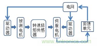 伺服電機可以進(jìn)行電機對拖,公共直流母線采用單獨的整流/回饋裝置,為系統(tǒng)提供電能,調(diào)速用逆變器直接掛接在直流母線上,當(dāng)系統(tǒng)工作在電動狀態(tài)時,逆變器從母線上獲取電能;當(dāng)負(fù)載被被測電機反向拖動的時候,伺服電機將會變成發(fā)電機,能量通過母線及回饋裝置直接回饋給電網(wǎng),以達(dá)到節(jié)能、提高設(shè)備運行可靠性等目的。