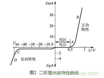 提到二極管,大家最熟悉的就是二極管的單向?qū)щ娦裕从撤睬€上如圖1所示。當(dāng)正向偏壓U=0.5V(硅管)時(shí),二極管開(kāi)始導(dǎo)通,電流越大電壓越大,具有很低阻抗;當(dāng)加反向偏壓時(shí)二極管不導(dǎo)通,在一定范圍內(nèi)有很小的漏電流,具有很大阻抗。其這個(gè)單向?qū)щ娦?,也起到了開(kāi)關(guān)的作用,所以在整流和開(kāi)關(guān)方面都有廣泛的應(yīng)用。