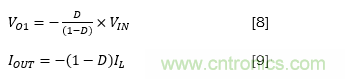 其中,VIN是輸入電壓,VO1是輸出電壓,D是占空比,IOUT是輸出電流,IL是電感器電流。