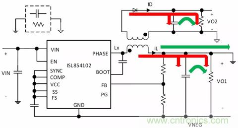 圖5. 將ISL85415降壓轉換器配置成反相降壓-升壓轉換器