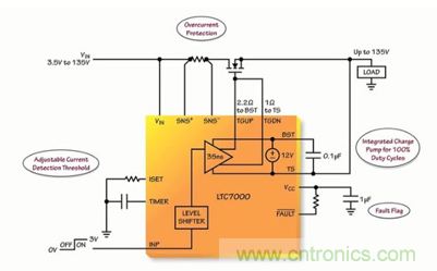ADI 電源產(chǎn)品組的設(shè)計工程師 Mark Mullen 就上述問題為大家分享了一個基于LCT7000受保護(hù)的高壓側(cè)驅(qū)動器解決方案。