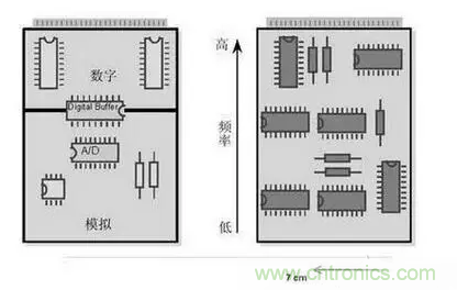 上面的兩種情況,說明數(shù)?;旌蠁伟逯校M電路極易受到干擾,會(huì)影響信噪比等指標(biāo)。所以在數(shù)?;旌蠁伟?PCB 設(shè)計(jì)過程中,要對(duì)布局布線提出很高的要求。