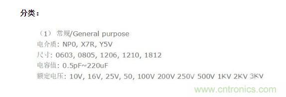 貼片電容規(guī)格:
