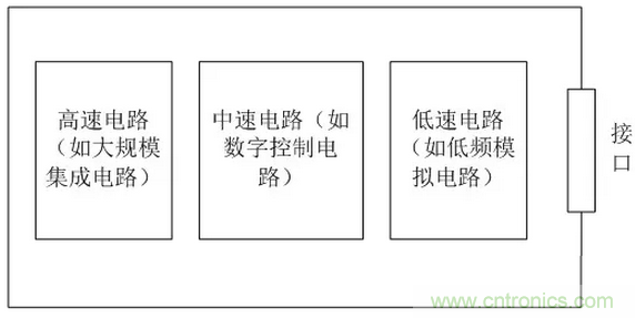 實際上,在電路板設計中,上述接地方法可以很好的實現(xiàn);但是在系統(tǒng)設計的接地設計中,由于要考慮信號傳輸質(zhì)量的好壞,另外系統(tǒng)對EMS、安全設計以及相應的EMC性能要求使接地變得更為復雜。