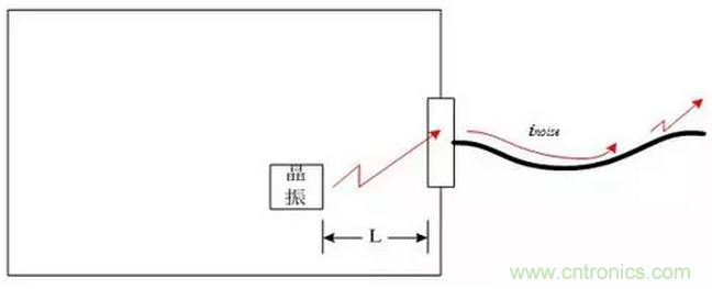 7、非屏蔽電纜原則上禁止直接從屏蔽體中出線。特殊情況下允許直接出線,但是要求屏蔽體內(nèi)側(或者外側)電纜的長度不得越過80mm,注意這個尺寸包括PCB上面的走線,如果有濾波電路,指濾波電路與屏蔽體之間的電纜長度。