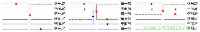 9、關鍵信號線(如時鐘線、總線、接口信號線、很射頻線、復位線、片選線)一般都是強輻射源或敏感信號線,盡可能靠近地平面布線,使其信號回路面積減少,減少其輻射強度或提高抗干擾能力。