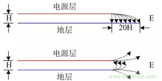 16、電源平面應相對于其相鄰地平面內(nèi)縮20H,當因結構限制時,也應保證5H
