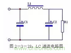 與RC濾波電路相對的還有一種LC濾波電路,這種濾波電路綜合了電容濾波電路紋波小和電感濾波電路帶負(fù)載能力強(qiáng)的優(yōu)點(diǎn)。其電路圖見圖2-3-28。