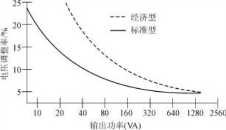 圖3 環(huán)形變壓器電壓調(diào)整率與輸出功率的關(guān)系曲線