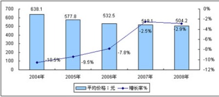 圖3 2003-2008(E)年中國(guó)DVD播放機(jī)平均價(jià)格