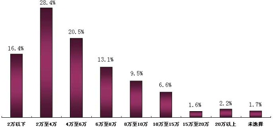 - 電子工程師收入水平:2~4萬(wàn)元/年的比例最大,高于6萬(wàn)/年的比例則超過(guò)了34.7%。