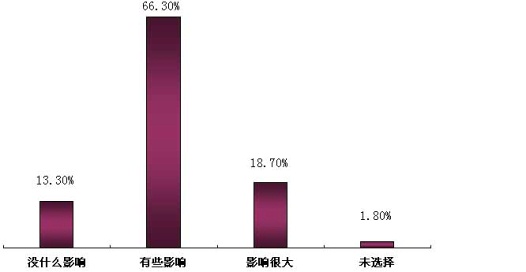 為了延展此次調(diào)查的規(guī)模,我們特意設(shè)置了這個(gè)問(wèn)題,向工程師了解他們身邊其他電子工程師的受影響程度。根據(jù)調(diào)查的結(jié)果,超過(guò)84.9%的調(diào)查對(duì)象受到了不同程度的影響。其中,18.7%的工程師受影響很大,可見此次經(jīng)濟(jì)危機(jī)的影響程度可謂深遠(yuǎn),這更需要我們有足夠的耐心和勇氣去面對(duì)。(見圖表五)