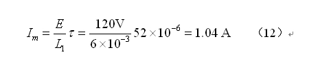假設(shè)其它參數(shù)不變,而把工作電壓由360V降為110V時(shí),開關(guān)電源的最大占空比可取值為0.7708,即:D = 0.7708 。當(dāng)開關(guān)電源的工作頻率為40kHz時(shí),電源開關(guān)管導(dǎo)通時(shí)的脈沖寬度 = 19.27 ,由此可以求得流過開關(guān)電源變壓器初級線圈的最大電流Im為: