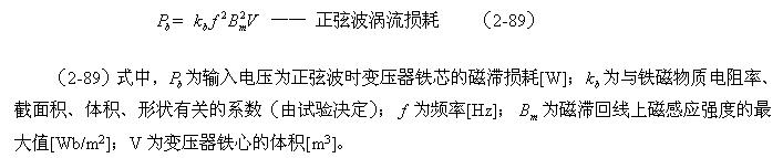 這里順便指出,利用(2-88)和(2-89)式來(lái)分別測(cè)試變壓器鐵心的磁滯損耗和渦流損耗是非常困難的;一個(gè)是它們的系數(shù)很難決定,另一個(gè)是兩者很難分別進(jìn)行測(cè)量,或從測(cè)量結(jié)果中進(jìn)行分離。對(duì)比兩式的參數(shù)就可以知道,它們之間最大的區(qū)別是頻率對(duì)損耗的影響程度;一個(gè)是與頻率成正比,另一個(gè)是與頻率的平方成正比。