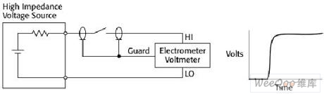 高阻抗電路對靜電干擾十分敏感,因此DUT和連接線都應該很好地屏蔽以防止噪聲感應。
