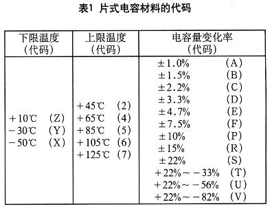 其余材料是按其工作溫度的范圍和電容量的變化率來命名的。詳見表1。