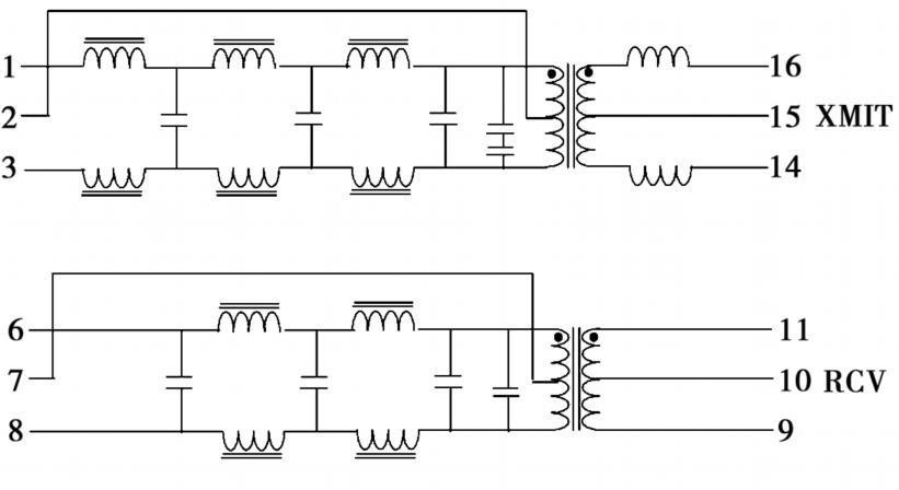 如圖3所示,本設(shè)計采用的是在通用的嵌入式微處理器$3C2440A上擴(kuò)展以太網(wǎng)接口的方式。CS8900A通過總線與處理器相連,中斷與處理器外部中斷相接。S3C2440A的數(shù)據(jù)線DB[15:0]與CS8900A的數(shù)據(jù)線SD[15:0]連接,地址線AB[19:0]與CS8900A的數(shù)據(jù)線SA[19:0]連接,用來實現(xiàn)CS8900A與S3C2440A之間的數(shù)據(jù)傳輸;S3C2440A的NET_IOR引腳連接CS8900A的讀引腳nIOR,NET_IOW引腳連接CS8900A的寫引腳nIOW,用來控制CS8900A的讀寫;CS8900A與網(wǎng)絡(luò)的連接由接收信號線RXD+、RXD-和發(fā)送信號線TXD+、TXD-通過隔離變壓器FB2022與以太網(wǎng)水晶接頭RJ_45相連。隔離變壓器的主要作用是將嵌入式系統(tǒng)與外部線路相隔離,防止干擾和燒壞元器件,實現(xiàn)帶電的插拔功能。其內(nèi)部結(jié)構(gòu)圖如圖4所示。