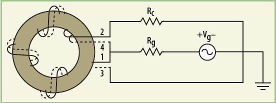 這種寬帶unun阻抗變壓器對(duì)測(cè)試電路、光接收器系統(tǒng)、帶寬帶阻抗匹配的微波電路,以及天線(xiàn)耦合也很有用??捎糜诟哳l電路設(shè)計(jì)及仿真的現(xiàn)代計(jì)算程序在自己的工具箱里就收納了這種器件。寬帶unun阻抗變壓器包含了一個(gè)纏繞了雙絞傳輸線(xiàn)的環(huán)形鐵氧體磁芯,繞線(xiàn)間通過(guò)釉質(zhì)膜隔離。結(jié)合常規(guī)傳輸線(xiàn)阻抗變壓器的設(shè)計(jì)元件,有可能建立起一個(gè)真正的寬帶組件。對(duì)1:4阻抗轉(zhuǎn)換比而言,這種設(shè)計(jì)方式可提供很高的效率。
