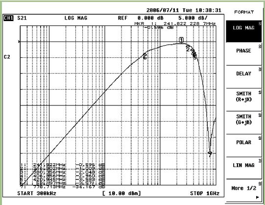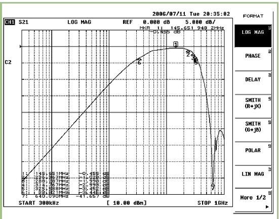 盡管三組結(jié)果是由不同的方法求出的,但它們彼此吻合良好。分析(MATLAB)和數(shù)值(ADS)模型獲得的響應(yīng)與實(shí)驗(yàn)獲得的響應(yīng)(VNA測(cè)量值)比較起來(lái)十分接近。利用分析和數(shù)值方法獲得的值近似相等,但與實(shí)驗(yàn)結(jié)果相比有少許差異。最好的解釋是,理論模型沒(méi)有把變壓器結(jié)構(gòu)中所采用的各元件的復(fù)雜特性完全考慮在內(nèi),而是按照幾乎“理想”的元件來(lái)建模的。