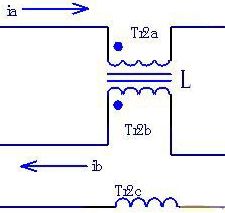 圖1所示的是共模電感的濾波電路,Tr2a和Tr2b就是共模電感L的兩個(gè)線圈。這兩個(gè)線圈繞在同一磁芯上,匝數(shù)和相位都相同。這樣,當(dāng)電路中流過(guò)電流ia和ib的大小相同、方向相反時(shí),電流在同相位繞制的電感線圈中產(chǎn)生反向的磁場(chǎng)而相互抵消,磁芯中沒(méi)有交變的磁通量產(chǎn)生。