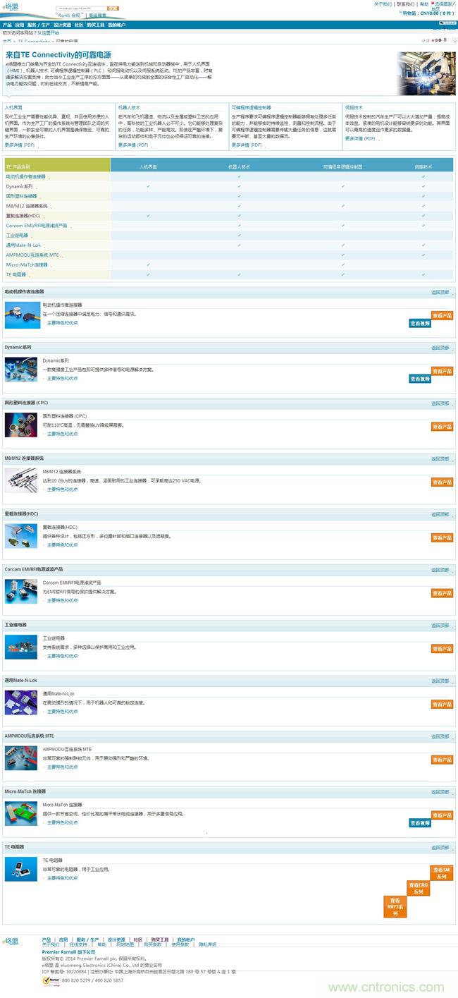e絡(luò)盟子站還為客戶提供一款產(chǎn)品導(dǎo)航器,使他們能夠根據(jù)各自的獨(dú)特設(shè)計(jì)需求和應(yīng)用難點(diǎn)快速購得所需的特定系列TE產(chǎn)品,如Dynamic系列、M8/M12連接器系統(tǒng)、重載連接器、工業(yè)繼電器及AMPMODU MTE連接器等。