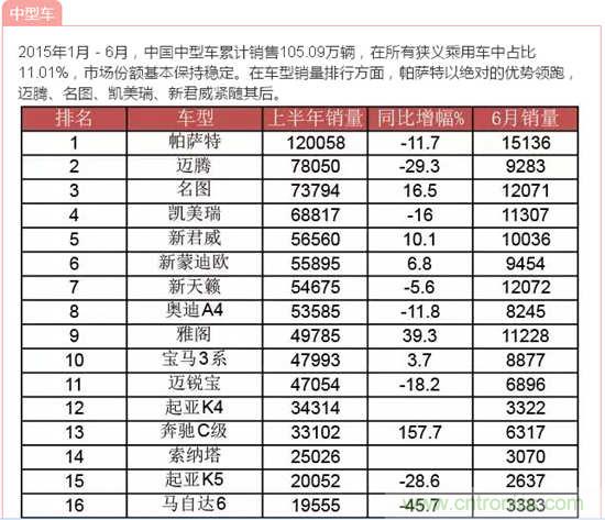 根據(jù)中國汽車工業(yè)協(xié)會(huì)的數(shù)據(jù),2015年上半年380余款車型的銷量按照級(jí)別分類如下: