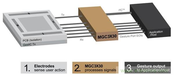 其中比較有代表性的,要數(shù)Microchip公司的GestIC技術(shù)。它基于電場(chǎng)感應(yīng)的原理,在電子設(shè)備周邊的空間中形成一個(gè)電場(chǎng)。當(dāng)手部在空間中運(yùn)動(dòng)時(shí)會(huì)使電場(chǎng)發(fā)生畸變,布設(shè)在電場(chǎng)中的電極接收器會(huì)感應(yīng)到這種變化,并通過專門的控制芯片進(jìn)行信號(hào)處理,對(duì)手勢(shì)進(jìn)行識(shí)別和運(yùn)動(dòng)追蹤,并將數(shù)據(jù)傳遞給電子設(shè)備做出響應(yīng)。Microchip代理商世健公司產(chǎn)品經(jīng)理介紹,與采用攝像頭的光學(xué)3D手勢(shì)識(shí)別技術(shù)相比,GestIC技術(shù)最大的優(yōu)勢(shì)在于功耗極低,能耗節(jié)省多達(dá)90%,同時(shí)能避免環(huán)境光等外部因素的干擾,雖然是一個(gè)近場(chǎng)識(shí)別技術(shù),但其在家庭自動(dòng)化、家電控制、音響系統(tǒng)、電腦及配件、汽車電子等方面,會(huì)有諸多應(yīng)用場(chǎng)景。