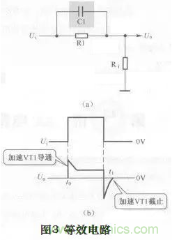 加速電容Cl與三極管VT1輸入電阻Ri構(gòu)成如圖3(a)所示的等效電路。