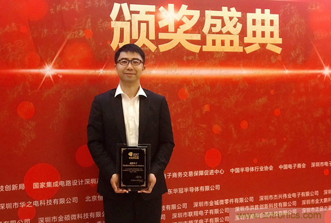 圖1:赫聯(lián)電子亞太區(qū)分公司經(jīng)理Collins Yang代表赫聯(lián)電子領(lǐng)獎