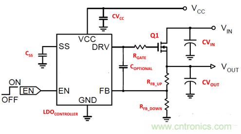 圖3:低壓降控制器驅(qū)動雙通道FET