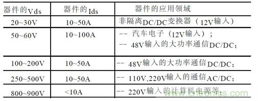 (A):根據(jù)電源規(guī)格,合理選擇MOSFET 器件(見下表):