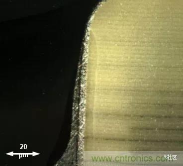 因?yàn)镸LCC主要成分是陶瓷,在放置元件,分板,上螺絲等工序中,很可能因?yàn)闄C(jī)械應(yīng)力過大導(dǎo)致電容受擠壓破裂,從而導(dǎo)致潛在的漏電失效。此時(shí)的裂縫一般呈斜線,從端子與陶瓷體的結(jié)合處開裂。