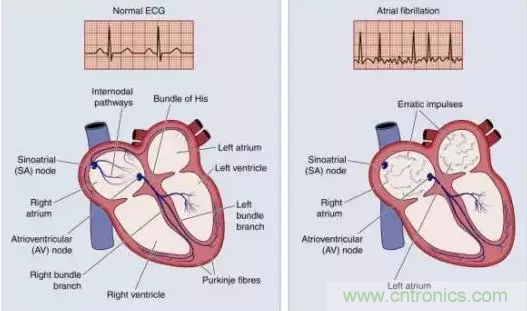 心律失常 (AFib)示意圖