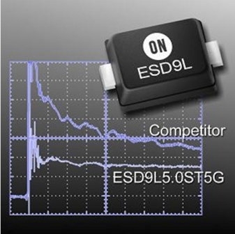 圖2:安森美半導(dǎo)體ESD9L的ESD保護(hù)性能明顯優(yōu)越于競爭器件。
