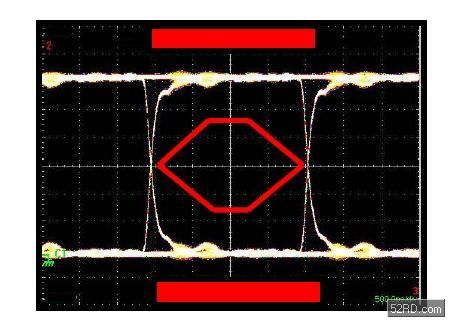 通過在示波器的垂直軸對(duì)數(shù)字信號(hào)進(jìn)行反復(fù)采樣、同時(shí)采用相應(yīng)數(shù)據(jù)率對(duì)水平時(shí)間掃描進(jìn)行觸發(fā)來生成眼圖。所獲得的圖形看上去象眼睛,如圖1所示。“眼睛”越大,數(shù)據(jù)完整性越高。通常采用模板(mask)來對(duì)可接受的信號(hào)質(zhì)量進(jìn)行定義。這模板由“眼睛”中間的六角形和“眼睛”上、下的矩陣組成。如果測得的信號(hào)跡線穿越模板的邊線,那么信號(hào)質(zhì)量就不可接受。USB2.0信號(hào)模板規(guī)范由USB應(yīng)用者論壇(USBIF,www.usb.org)提供,可參見USB2.0版規(guī)范第7.1.2.2章節(jié)。圖1中顯示了帶有詳細(xì)臨界點(diǎn)的眼圖。