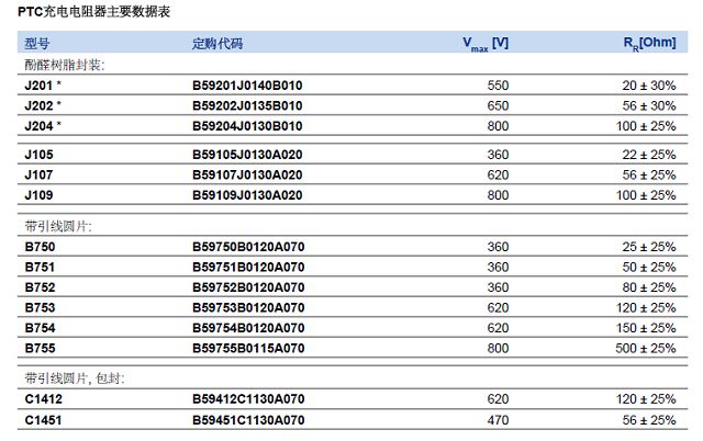 TDK-EPC常用的ICL PTC的規(guī)格型號(hào)如下表: