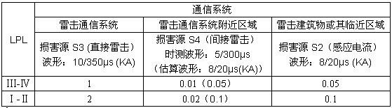 表3 通信系統(tǒng)雷電流浪涌的預(yù)計(jì)值
