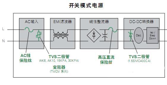 AC線保險絲選用464系列,它提供了最小化、快速響應(yīng)的表面貼裝型250VAC保險絲,符合IEC60127-4標(biāo)準(zhǔn),464特別針對電源和照明系統(tǒng)設(shè)計應(yīng)用而設(shè)計。