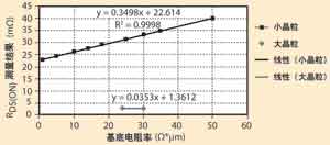 基底電阻率的變化會給RDS(on)測量結(jié)果帶來線性響應(yīng)。圖3顯示了遠(yuǎn)遠(yuǎn)超出實際基底正常分布的基底電阻率。這樣做是為了顯示響應(yīng)是線性的。