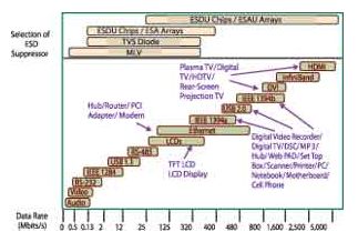 圖1 不同數(shù)據(jù)速率對應的靜電放電抑制技術