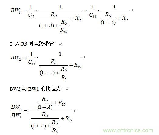 我們不妨假設(shè)A很小,利用(2)式,可得不加R6時,電路的帶寬為:
