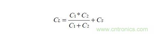 圖示的C1,C2就是為晶振工作在并聯(lián)諧振狀態(tài)下得到加載電容CL的電容。關(guān)于最優(yōu)的加載電容CL的計(jì)算公式為: