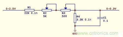 對地電阻并電容C1,獲得低通濾波器,轉(zhuǎn)折頻率f=1/2piC1(R4//(R1+R2+R3))《zc=1kHz,C1》0.054uF,實際取0.1uF。
